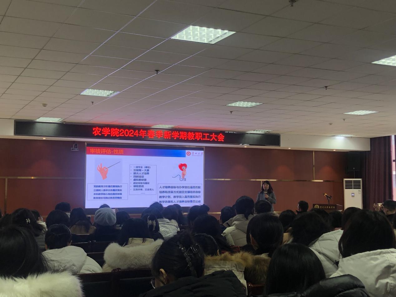 农学院依据《贵州大学本科教育教学审核评估工作实施方案》第一时间部署学院相关工作,于2023年12月29日成立了农学院本科教育教学审核评估工作领导小组,学院通过主要领导亲自抓、班子成员靠前抓、分管领导沉下抓、教学科具体执行层层落实各项任务。于2024年1月17日制定了农学院本科教育教学审核评估工作方案,明确了工作的指导思想、工作要求、工作目标、 任务分配、工作进度及安排等要素,将评建工作分为动员部署、自查自建自评、整改提高、预评完善等阶段,制定各项具体任务和时间节点。