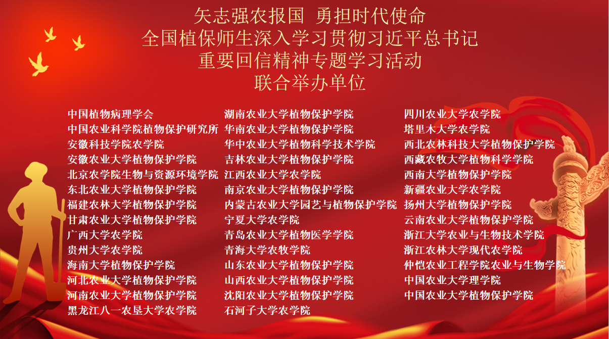 会上中国农业大学宣传部部长赵竹村,浙江大学农业与生物技术学院副院长叶楚玉教授,西北农林科技大学教务处处长戴武教授,南京农业大学胡高教授,中国农业科学院植物保护研究所成果转化处副处长刘永强研究员从继承和发扬优良传统、培养拔尖创新人才、科研创新以及成果转化等方面分享实践经验,共筑新时代植保人强国使命。吉林农业大学刘朴教授深情讲述了“蘑菇院士”李玉躬耕为农的强国梦,为植保工作者树立了榜样。