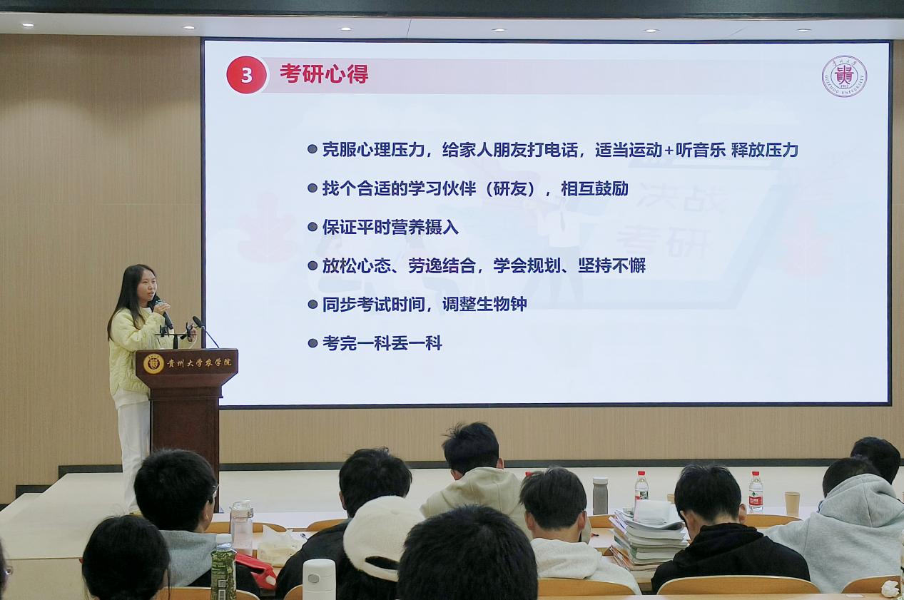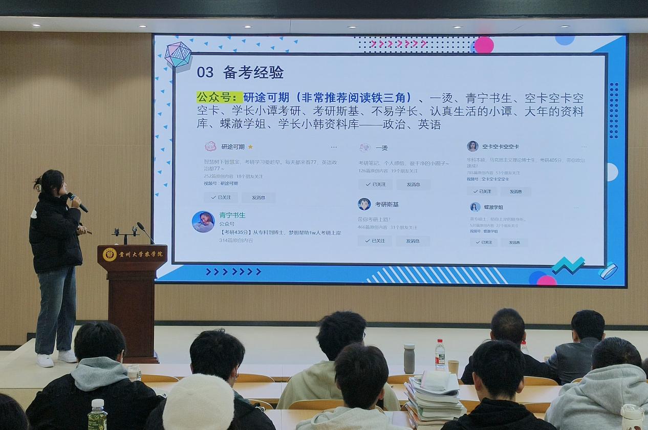 (团委网站讯记者|摄影欧云桃)11月5日,农学院学生组织发起的考研经验分享会在崇学楼162教室举行。活动特别邀请4位成绩优异的在读研究生,结合自身备考经历,为现场本科生进行考研指导,助力同学们明晰备考方向、提升复习效率。