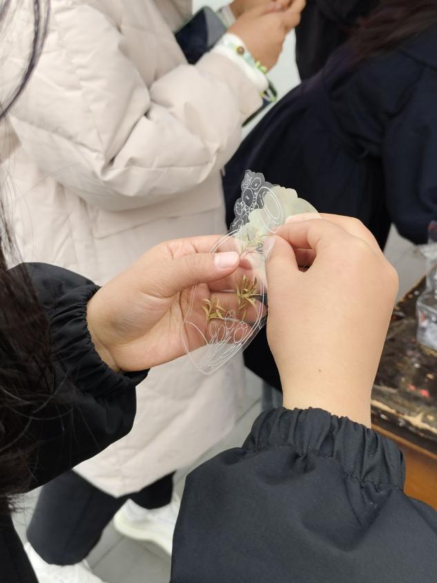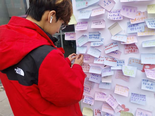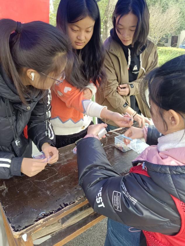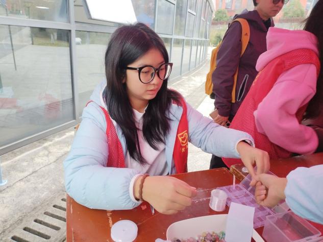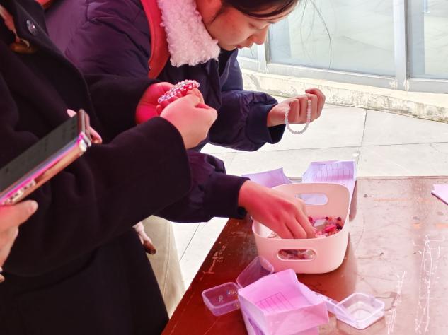 活动设置四个环节。在“笔传谢意,墙聚暖情”环节,师生们写下对老师、同学、家人的祝福签,贴满感恩墙。“心声互换,陌暖相逢”环节中,师生写好对陌生人的祝福语投入祝福箱,再从祝福箱中随机抽取陌生人的祝福语和纪念品卡片,并以感恩为题开展干花、空瓶制作专属书签的现场手工体验。“线绕千意,珠承温情”环节中,用彩色串珠制作手链、钥匙扣等,将乐趣与温情串在一起。