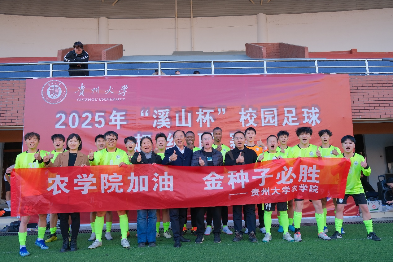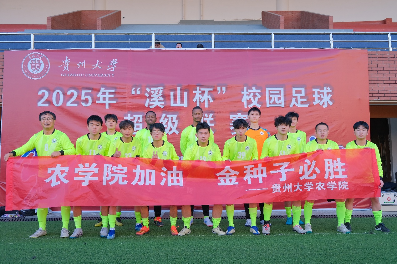 2025年11月21日,农学院“金种子”男子足球队开启贵州大学“溪山杯”校园足球超级联赛征程,在西二区体育场迎战首个对手酿酒与食品工程学院“发酵风暴”队。双方经过40分钟激战,“金种子”队5:0战胜“发酵风暴”队,取得开门红。“金种子”队3号詹智涵独中三元,上演帽子戏法,10号富有和12号班格里各进一球。赛前,农学院党委书记冉龙彪、党委委员蔡菲,以及球队教练李振华作现场动员。
