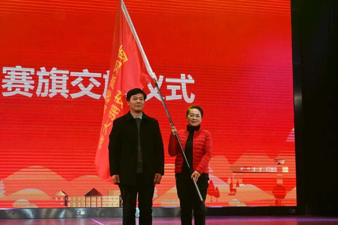 在大赛颁奖晚会最后,张万萍院长代表下一届赛事主办院校郑重接过大赛赛旗。她深情寄语青年学子:“学生只管用心用情用力地去成长,其他的一切都交给老师!”,真挚表达了高校教师育人的担当与情怀,获得现场师生的热烈掌声。