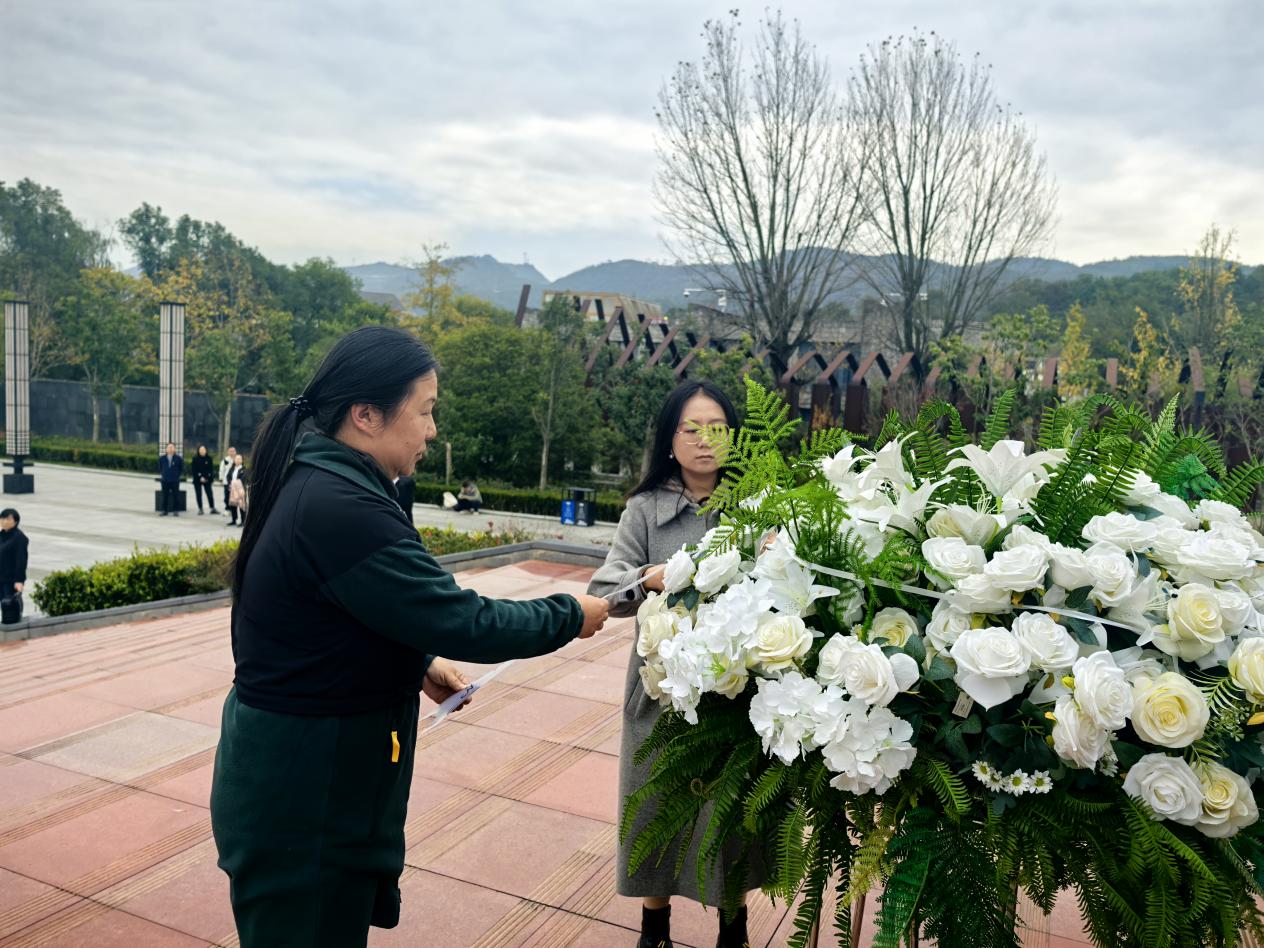 参观尾声,全体预备党员在庄严肃穆的革命先烈纪念碑前整齐列队。蔡菲和柳依溪代表农学院师生向革命先烈敬献花篮,全体人员鞠躬致哀,表达对先烈的深切缅怀与崇高敬意。随后,在领誓人的带领下,大家面向鲜红的党旗,高举右拳,庄严重温入党誓词:“我志愿加入中国共产党……”铿锵有力的誓言回荡在广场上空,字字千钧、掷地有声,将“为人民服务”的初心使命深深镌刻在每位新党员心中,进一步坚定了大家听党话、跟党走的信念决心。
