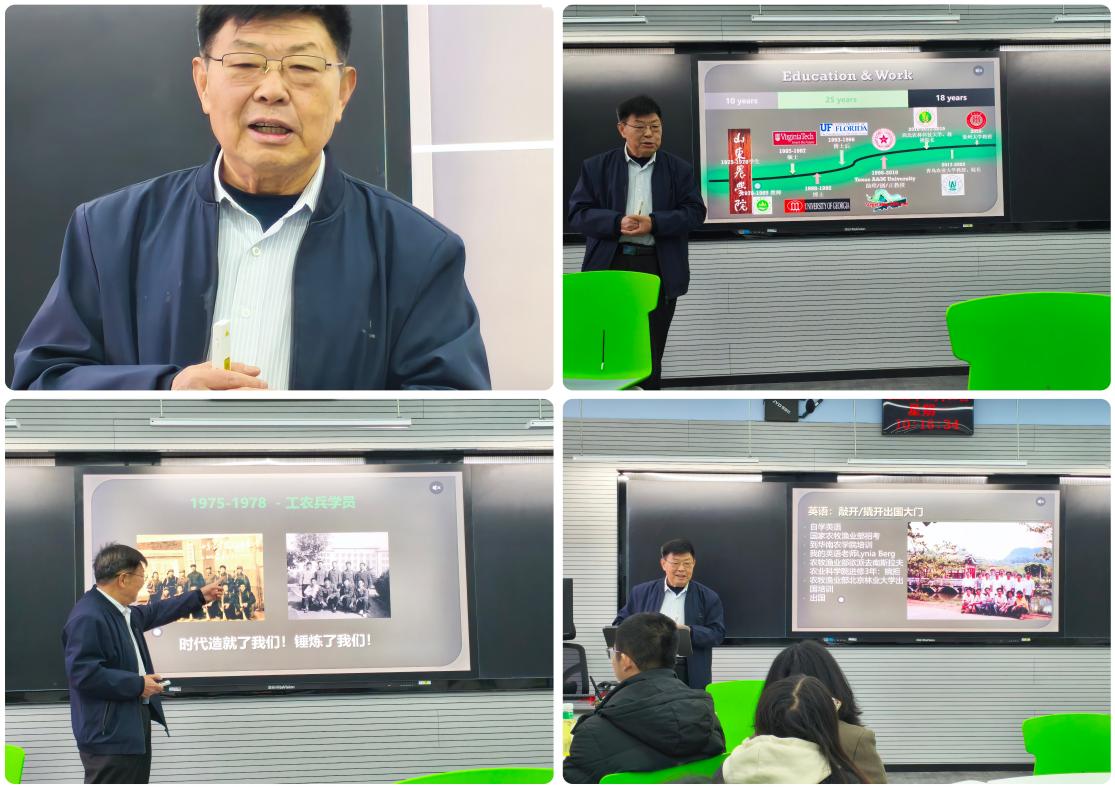 刘同先教授拥有25年国际学术深造与工作阅历,作为国家首批海外特聘专家,其深厚的国际学术积淀为同学们打开了学术创新的新视野。报告中,教授以“个人学术成长轨迹”为主线,生动回溯了自身学术进阶历程:从1975年山东农学院(现山东农业大学)工农兵学员时期的时代淬炼,到远赴美国弗吉尼亚理工大学攻读硕士、佐治亚大学攻读博士、佛罗里达大学开展博士后研究,再到于德州农工大学从助理教授逐步晋升为正教授的深耕之路。