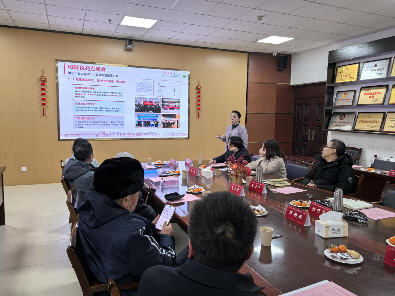 张万萍向离退休教师代表汇报学院2025年的高质量发展成效,从党建引领、学科建设、科学研究、社会服务、国际交流与合作等方面进行了介绍,分享学院取得的工作亮点和成绩。