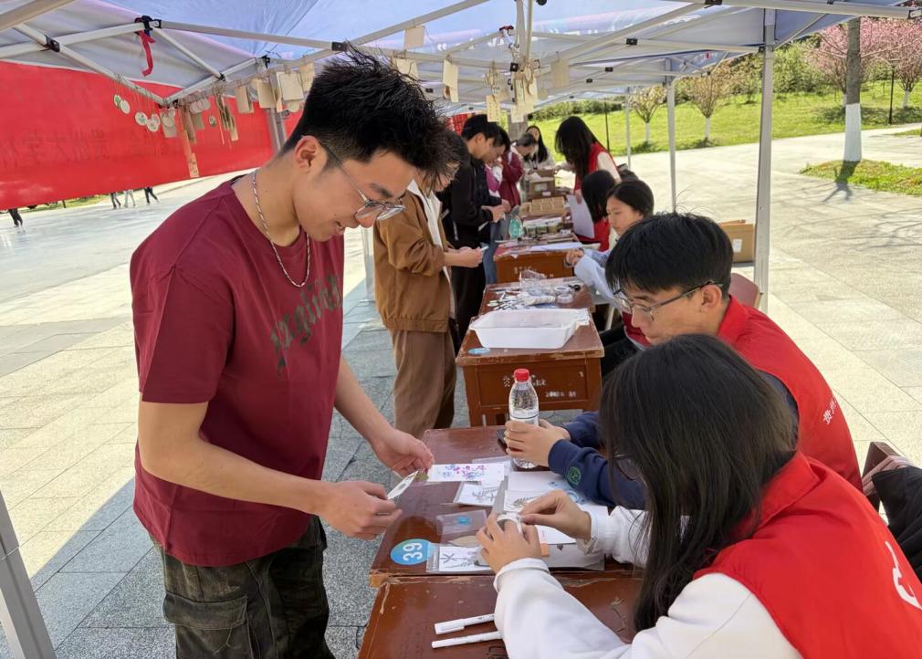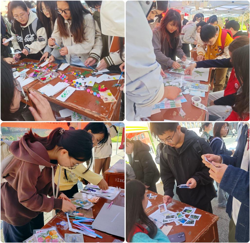 活动包括植物知识学习、手工创意制作、环保理念践行等六个特色专题,开展趣味科普与手工实践,通过阶梯式奖励机制激发师生参与热情,现场热闹有序。师生在猜谜中熟记植物特征,在拓印、手作书签中感受自然之美,在书写绿色心愿、制作护绿标语中深化环保认知,用积分兑换贴纸认证及幸运草书签、多肉盆栽、种植盲盒等精美奖品,认知环保,增进知识,获得惊喜。