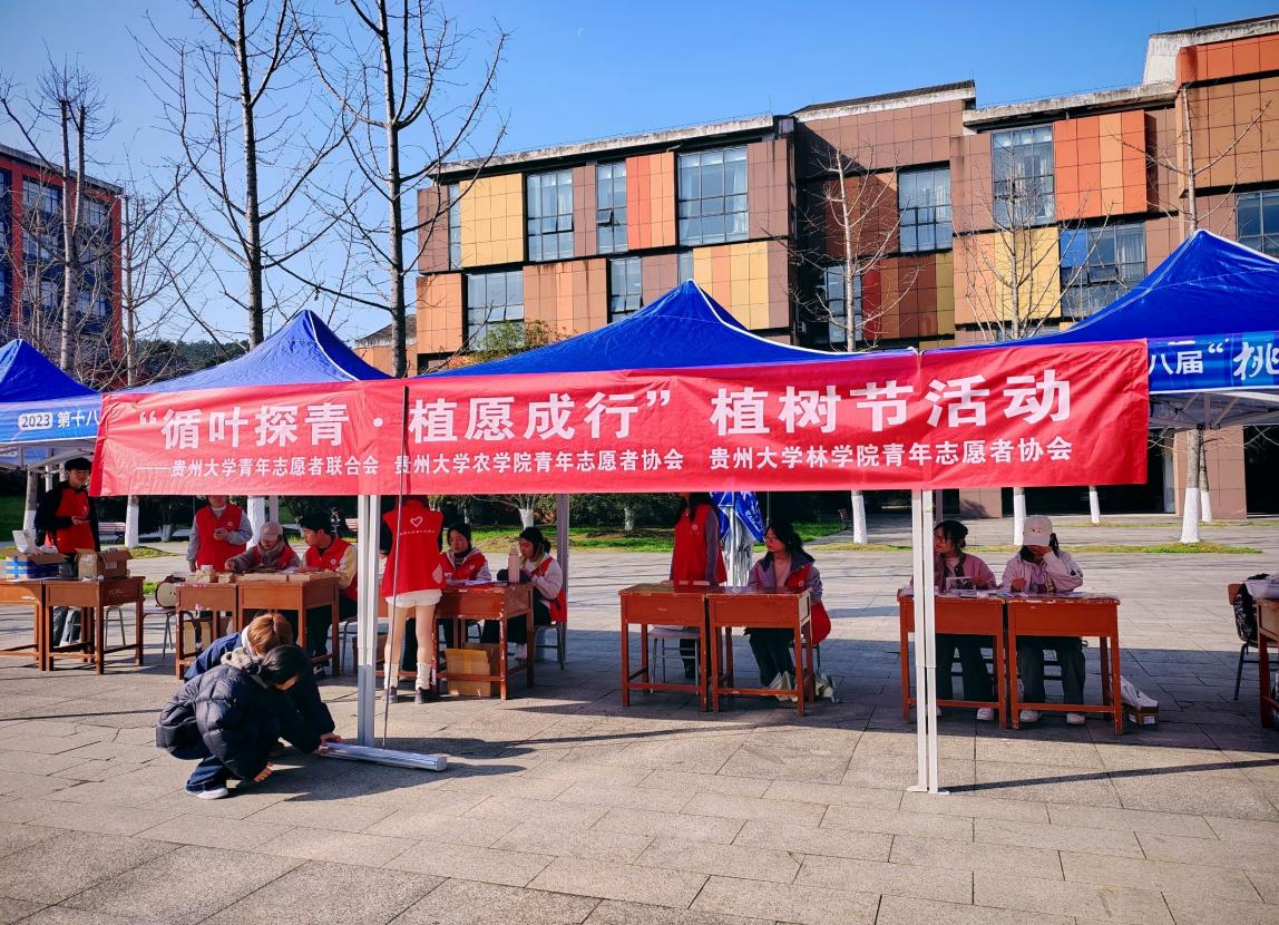 2026年3月12日,在第48个植树节之际,共青团贵州大学委员会主办,农学院青年志愿者协会与贵州大学青年志愿者联合会、林学院青年志愿者协会联合承办“循叶探青·植愿成行”植树节主题活动,活动在西区雅文楼广场举行,吸引全校众多师生参与,共赴春日绿色之约。