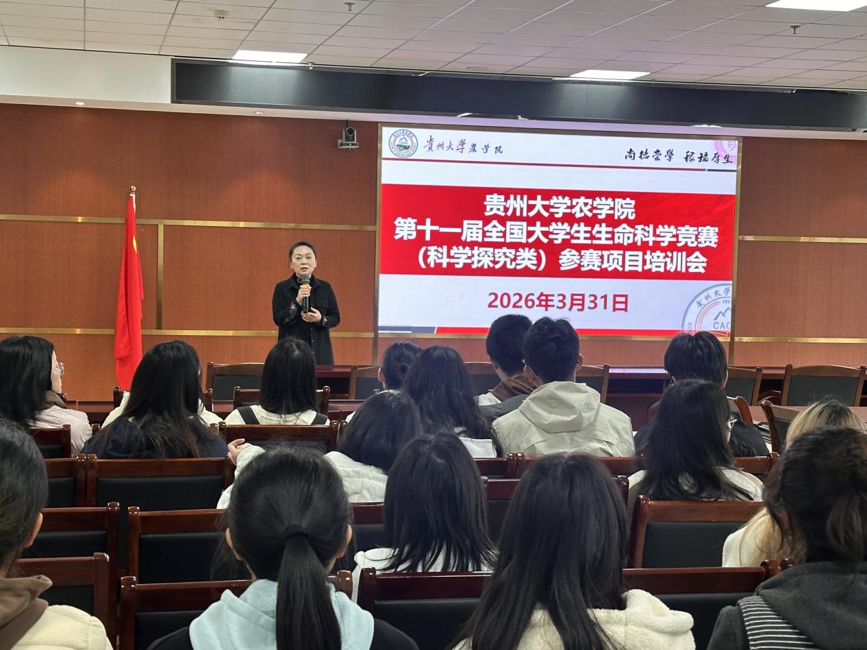 3月31日,贵州大学农学院第十一届全国大学生生命科学竞赛参赛项目培训会在崇学楼339会议室举行。农学院院长张万萍教授出席本次培训会,100余支生命科学竞赛参赛队伍负责人参加。